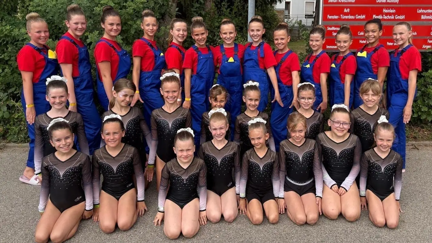 Die Nachwuchsgruppe startet in einer höheren Altersklasse, inklusive neuer Herausforderungen wie Überschlägen und Saltos. Den Auftakt machte ihr Tanz zum Thema „Super Mario“, den sie gegenüber dem Vorjahr in Länge und Schwierigkeitsgrad erweitert hatten. Mit 9,3 von zehn möglichen Punkten (0,1 Abzug) überzeugten sie die Kampfrichter. Anschließend stand das Schlagballwerfen mit einem 200 Gramm-Ball auf dem Programm. Hier erreichte die Gruppe 218,91 Meter und damit 9,45 Punkte. Nach einer kurzen Pause folgte die Disziplin Turnen. Die Mädels bewiesen, dass sich das Training gelohnt hatte, und präsentierten eine solide Leistung, die mit 9,0 Punkten bewertet wurde, eine Steigerung um 0,5 Punkte gegenüber dem letzten Wettkampf.