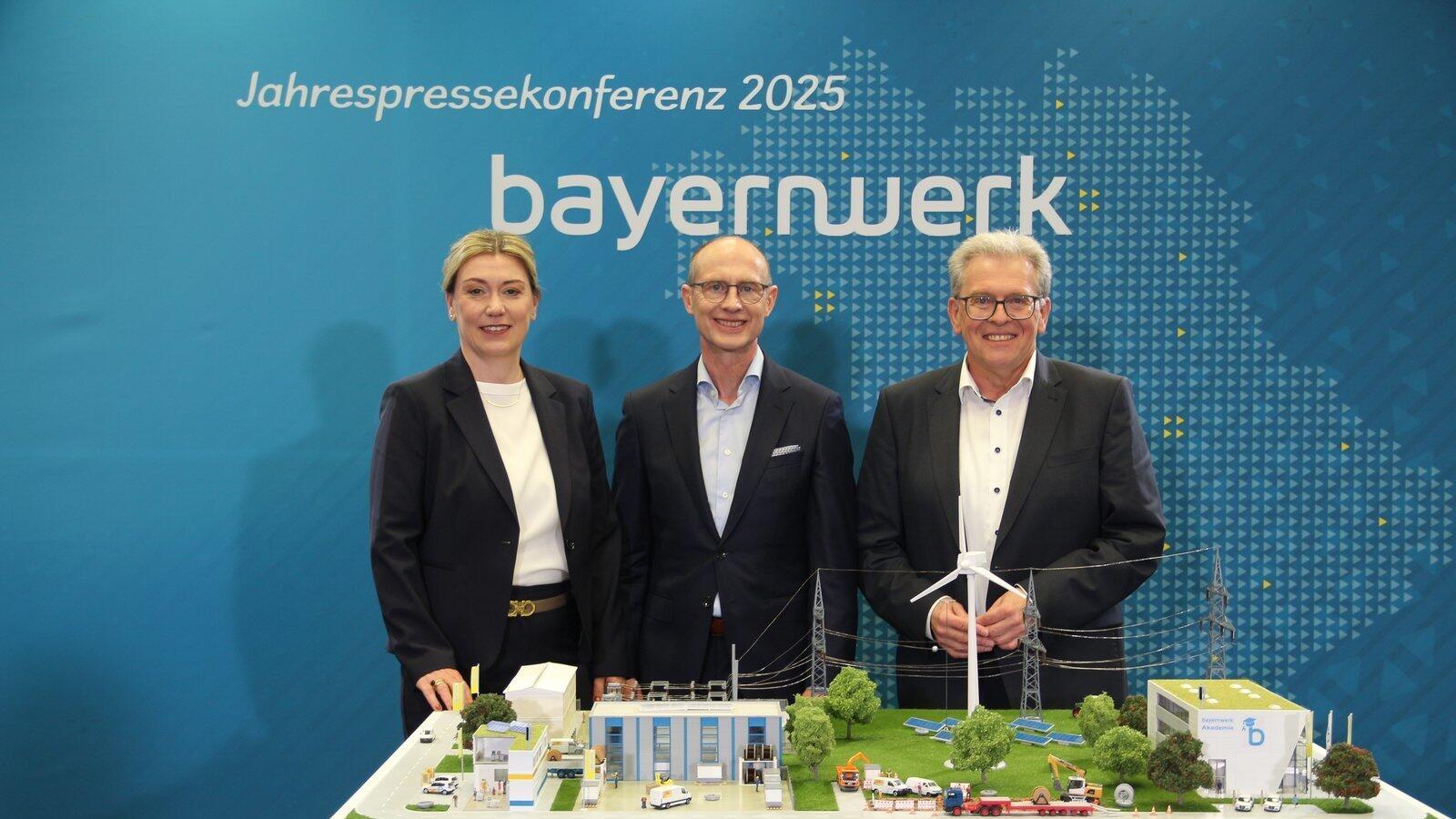 Daniela Groher, Egon Leo Westphal (M.) und Albert Zettl präsentieren die Vision von Bayernwerk.