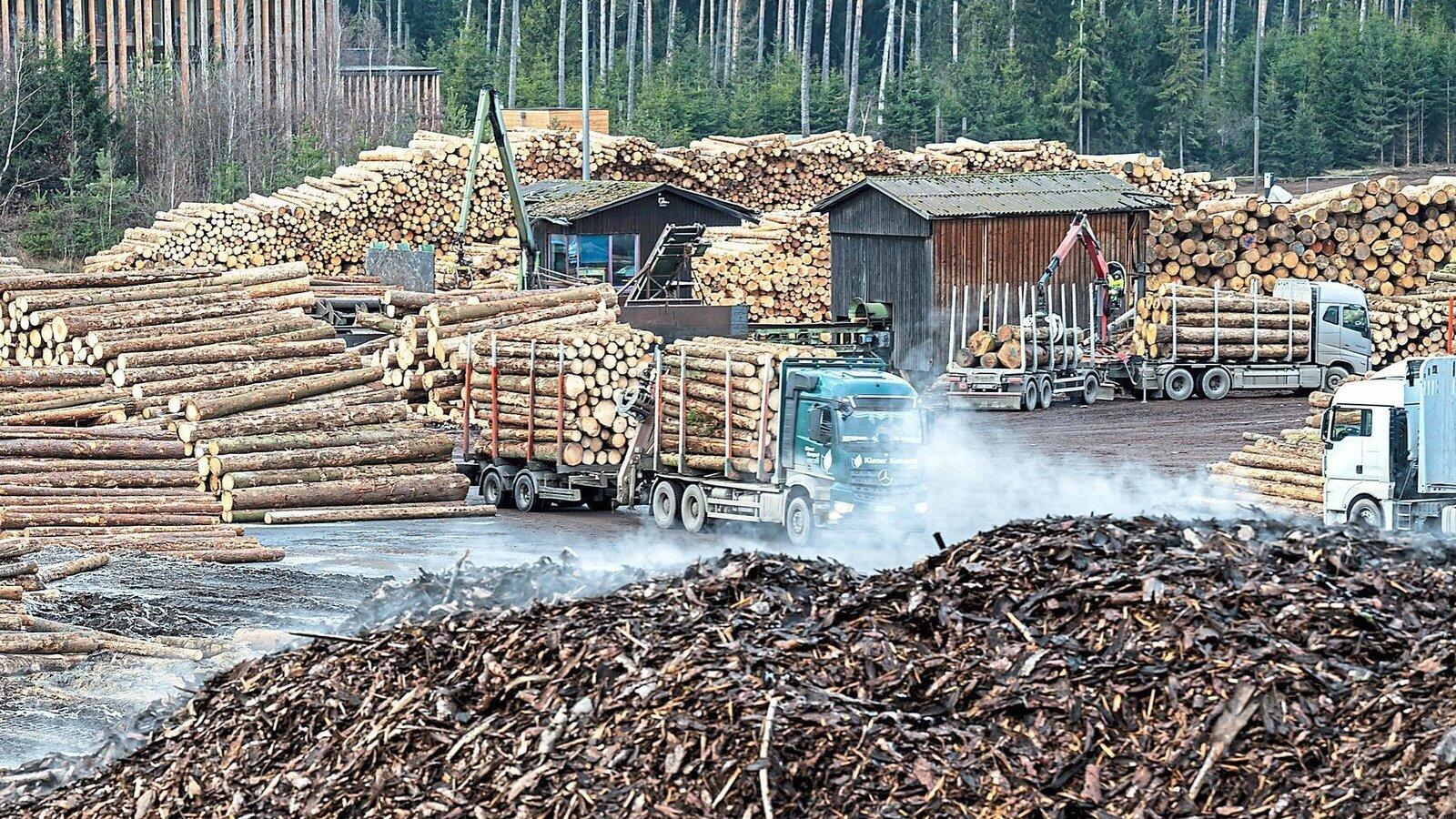 Holzstämme liegen auf dem Gelände des Sägewerks der Ziegler Group in Plößberg. Das Bild stammt aus besseren Zeiten, mittlerweile ist das Holzlager leer, der Markt auch. Soll der Betrieb aber in Zukunft weitergehen, braucht es dringend Lieferungen.