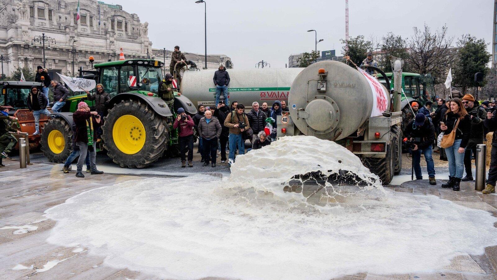 Landwirte protestieren mit ihren Traktoren in Mailand gegen das EU-Mercosur-Freihandelsabkommen.