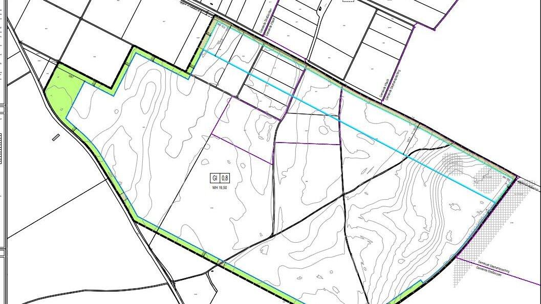 So sieht er aus, der Vorentwurf des Bebauungsplans für das Montagewerk in Straßkirchen/Irlbach. Bei den Grünflächen sind nur die sieben Hektar im Westen und Süden des Areals fixiert. Weitere rund 19 Hektar Grünflächen müssen noch auf dem Areal Platz finden.